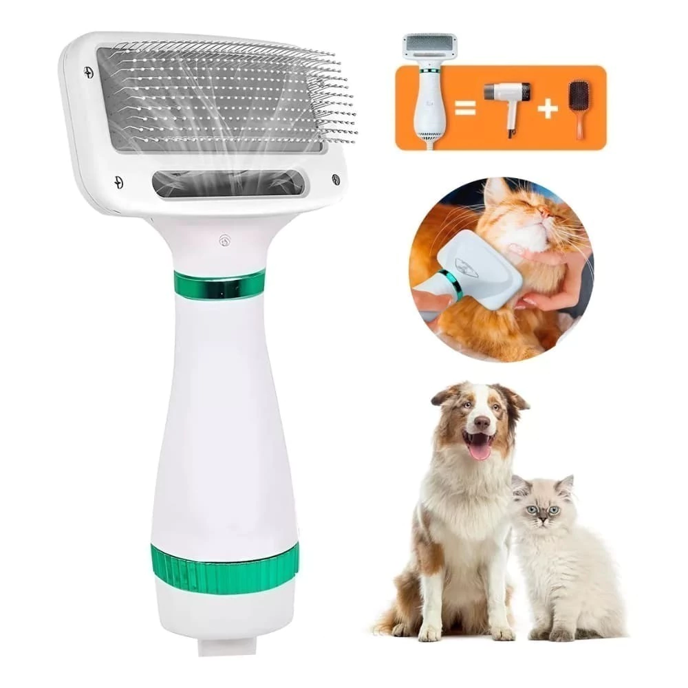 Este producto multifuncional no solo peina y seca el pelo de tu perro o gato, sino que también actúa como un masajeador, proporcionando un momento de relajación y bienestar a tu mascota. Sus cerdas de acero inoxidable son duraderas y resistentes, diseñadas para eliminar eficazmente el pelo suelto y evitar enredos.